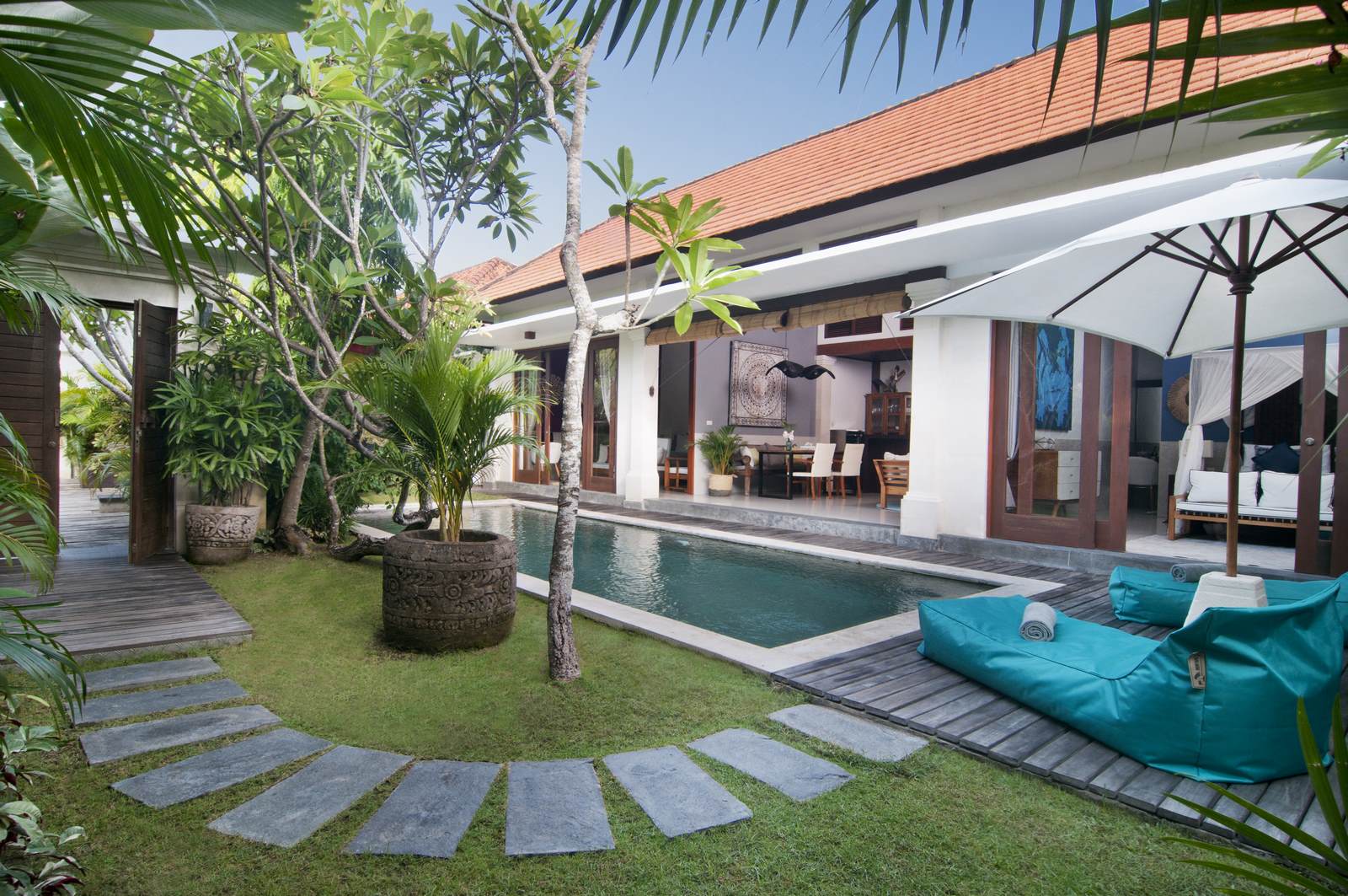 set in a private street and peaceful neighborhood just a few hundred meters away from Petitenget and Oberoi with its famous and fancy restaurants, shops and nightlife.